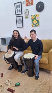 Atelierul de muzicoterapie din 18 martie s-a desfășurat într-un mod special, la dorința copiilor, în sala de socializare a Liceului Tehnologic Special „Regina Elisabeta”, un loc drag lor, aflat chiar lângă sala de lectură.